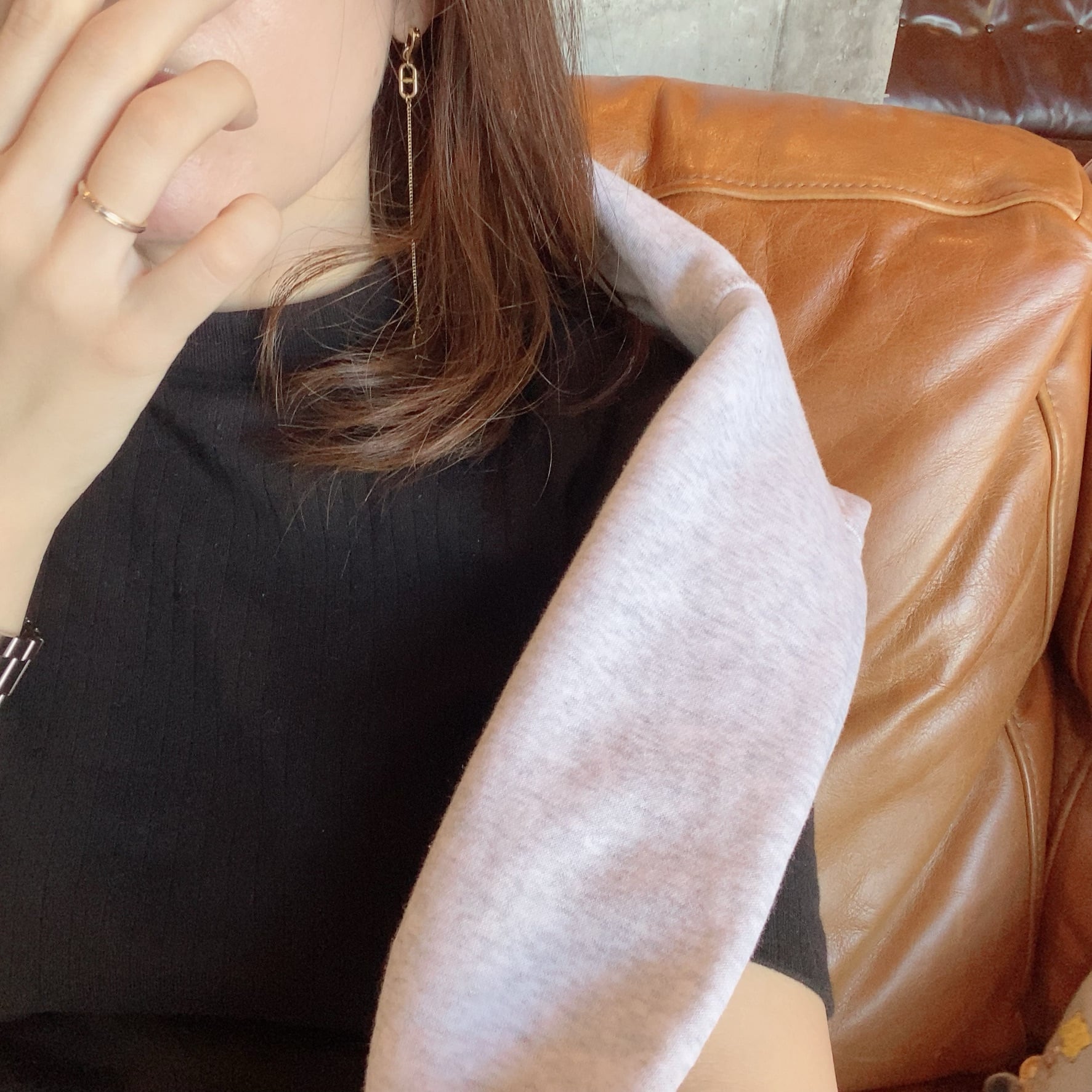 ゴールドのチャーム付きロングピアス。