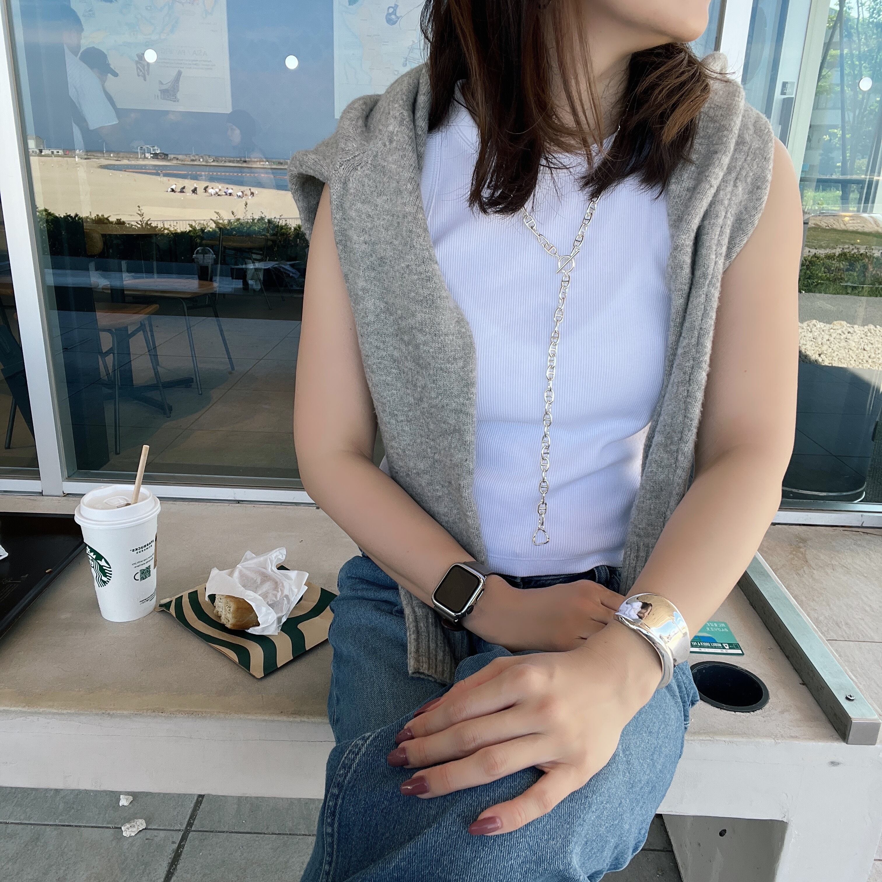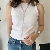 1番長い所で止めるとロングタイプのネックレスに変わります。