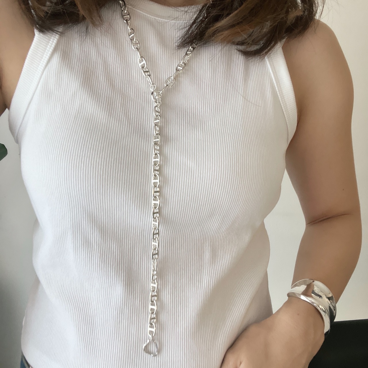 短い所でチェーンを止めるとY字のようなデザインになり、